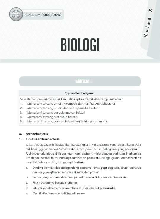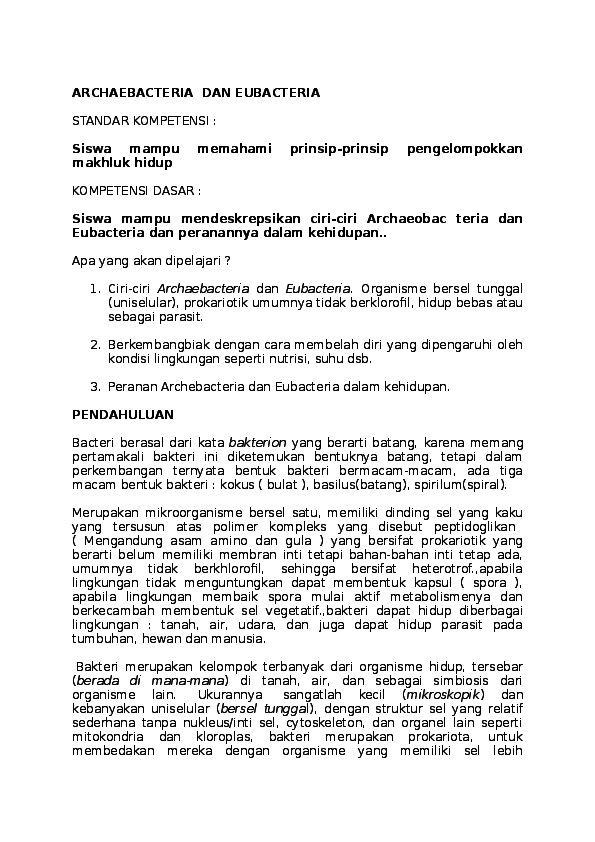 Ciri Archaebacteria dan Eubacteria adalah selnya bersifat prokariotik. Tersusun atas satu sel (uniseluler). Memiliki alat gerak berupa flagel. Pada Eubacteria dinding sel terdapat peptidoglikan.