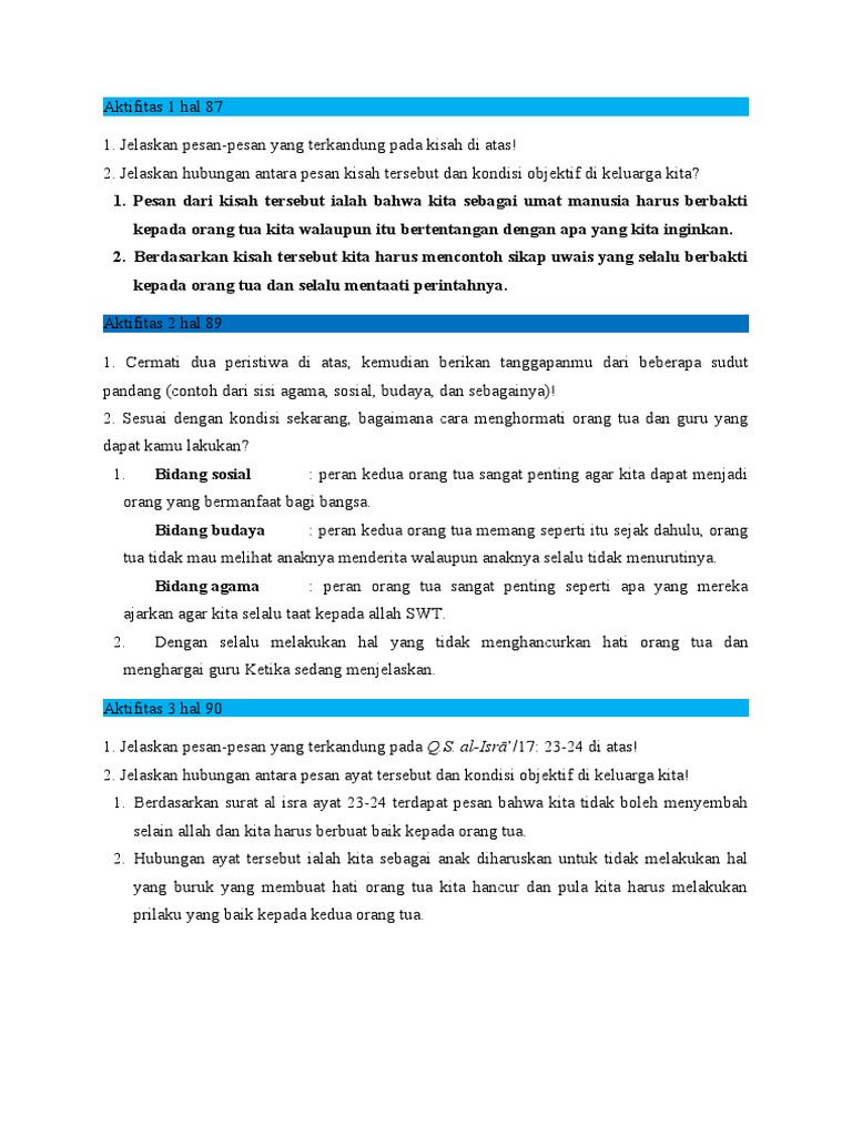 Ayah dan ibu selalu mendidik dan memberi bekal untuk pendidikan anaknya. Ayah dan ibu memberi kasih sayang dengan ikhlas tanpa meminta balasan. Orang tua merupakan pintu surga pertengahan. Menjadi Amalan di Jalan Allah.
