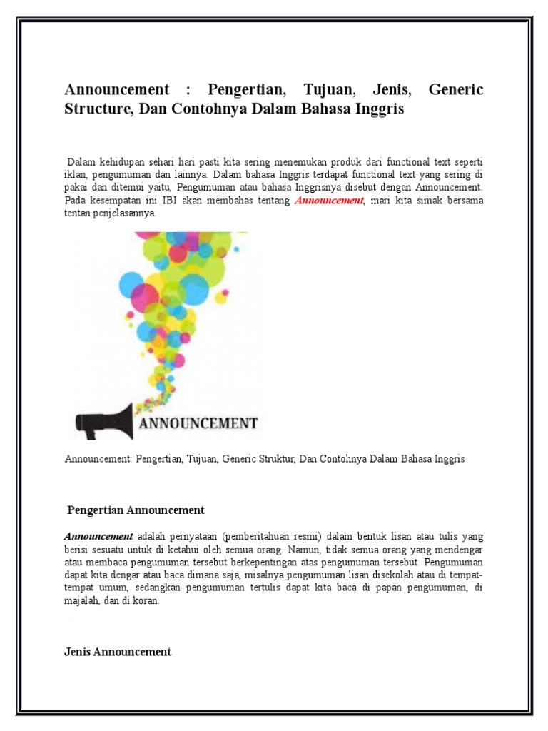 Pengertian pengumuman dalam bahasa inggris
